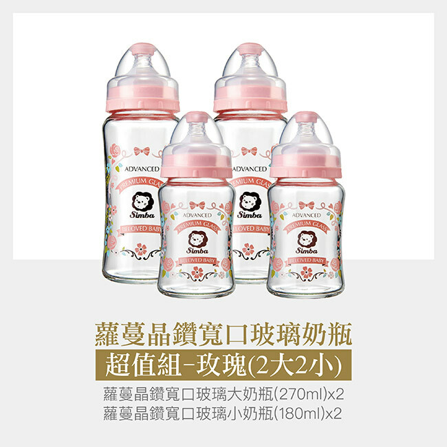 Romance 4 Pack Glass Wide Neck Feeding Bottle