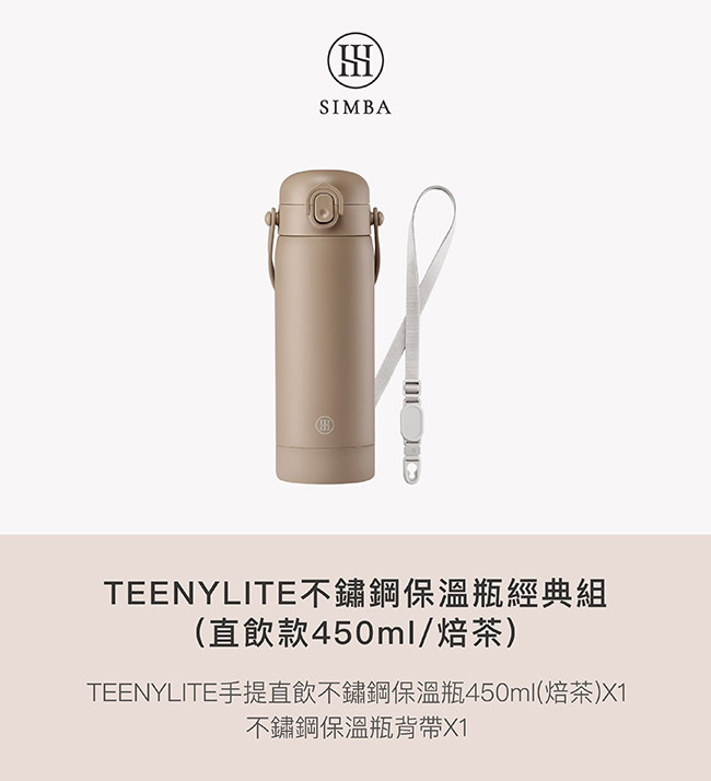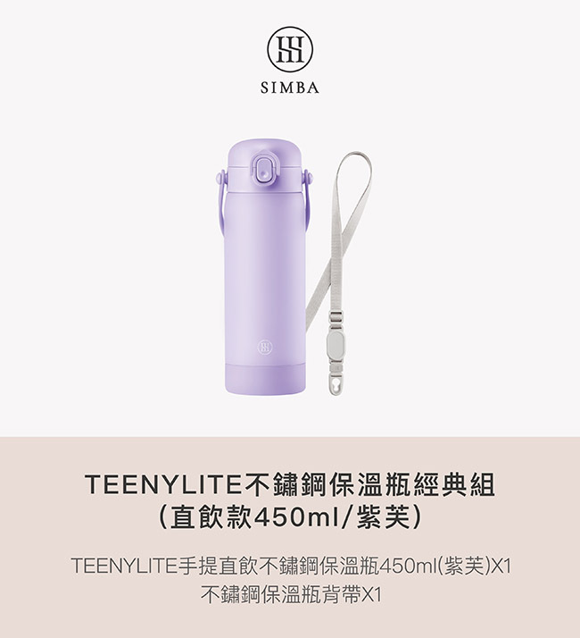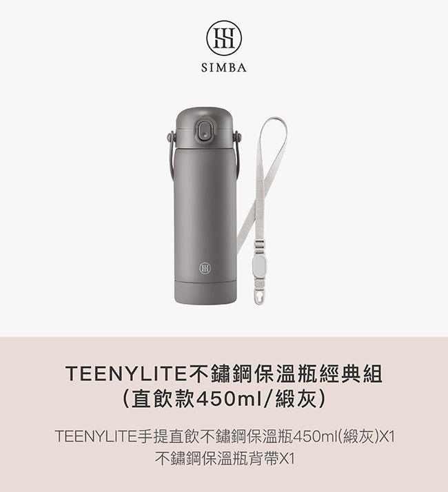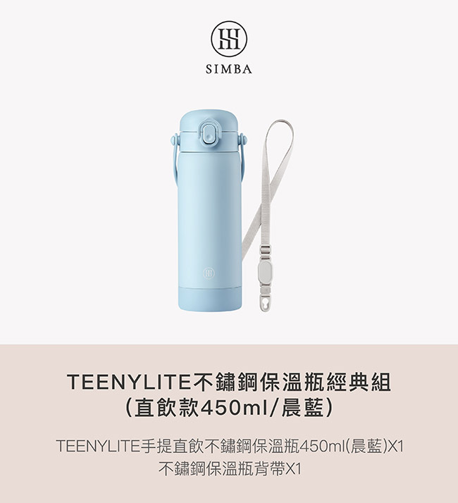 •TEENYLITE手提直飲不鏽鋼保溫瓶450ml X1