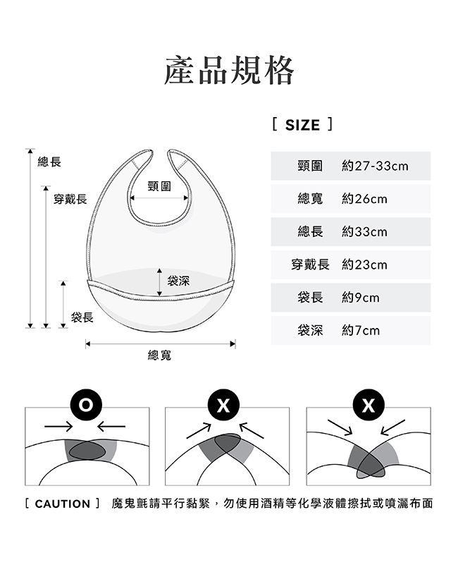 •加長魔鬼氈,鬆緊彈性調整,適合不同寶寶脖圍。