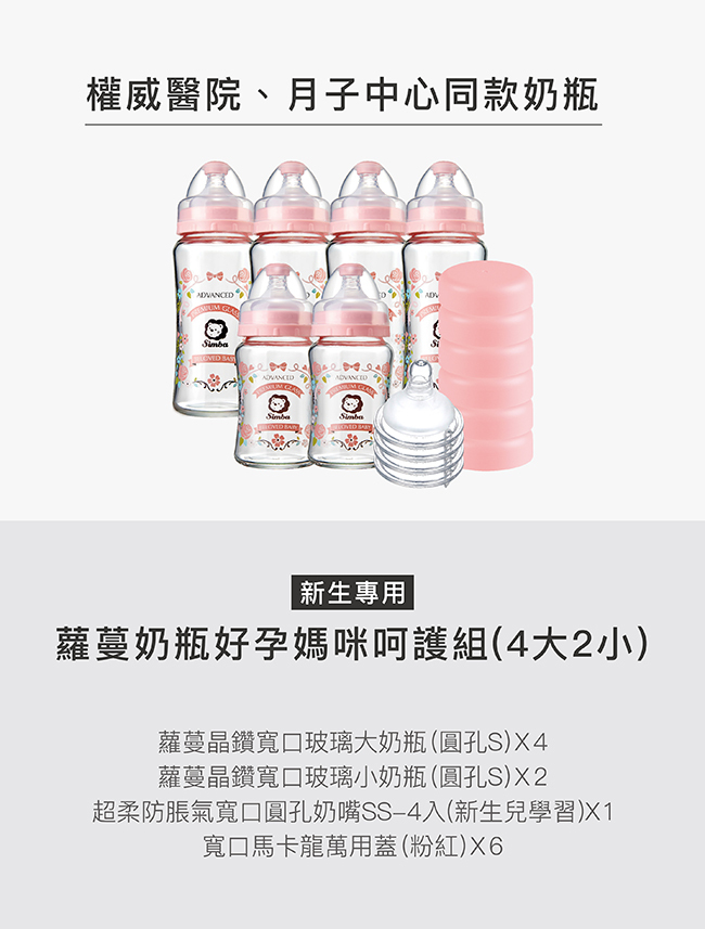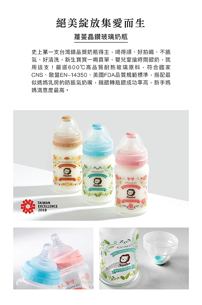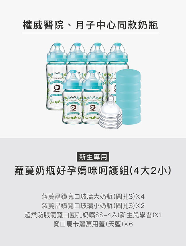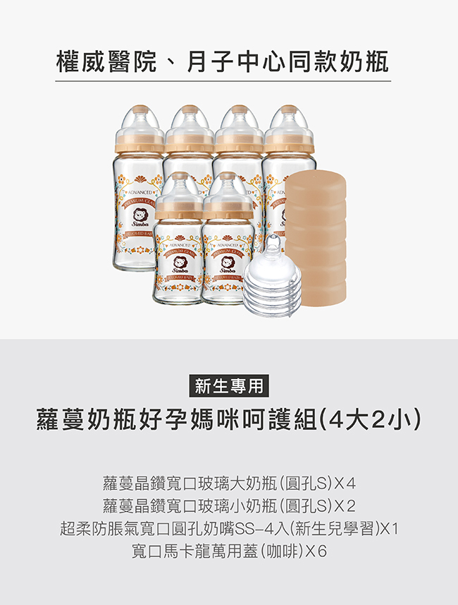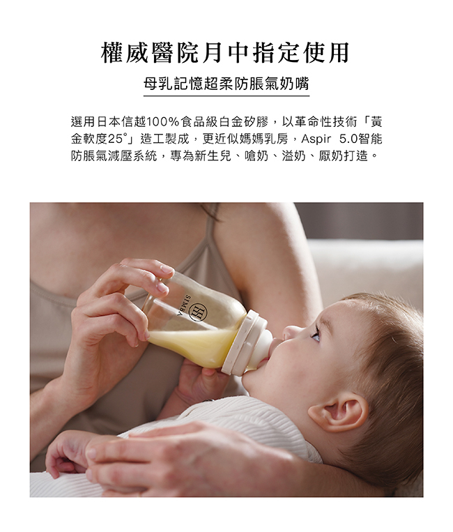 •搭配母乳記憶超柔防脹氣寬口圓孔S奶嘴。