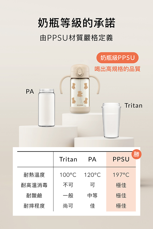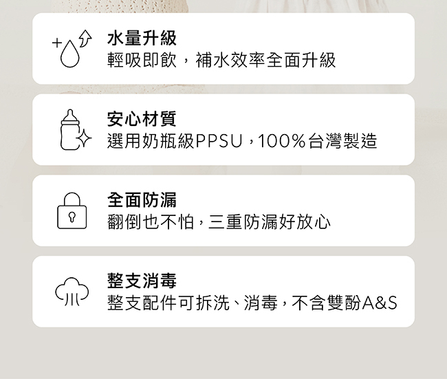 •選用奶瓶級PPSU材質,喝出高規格品質。