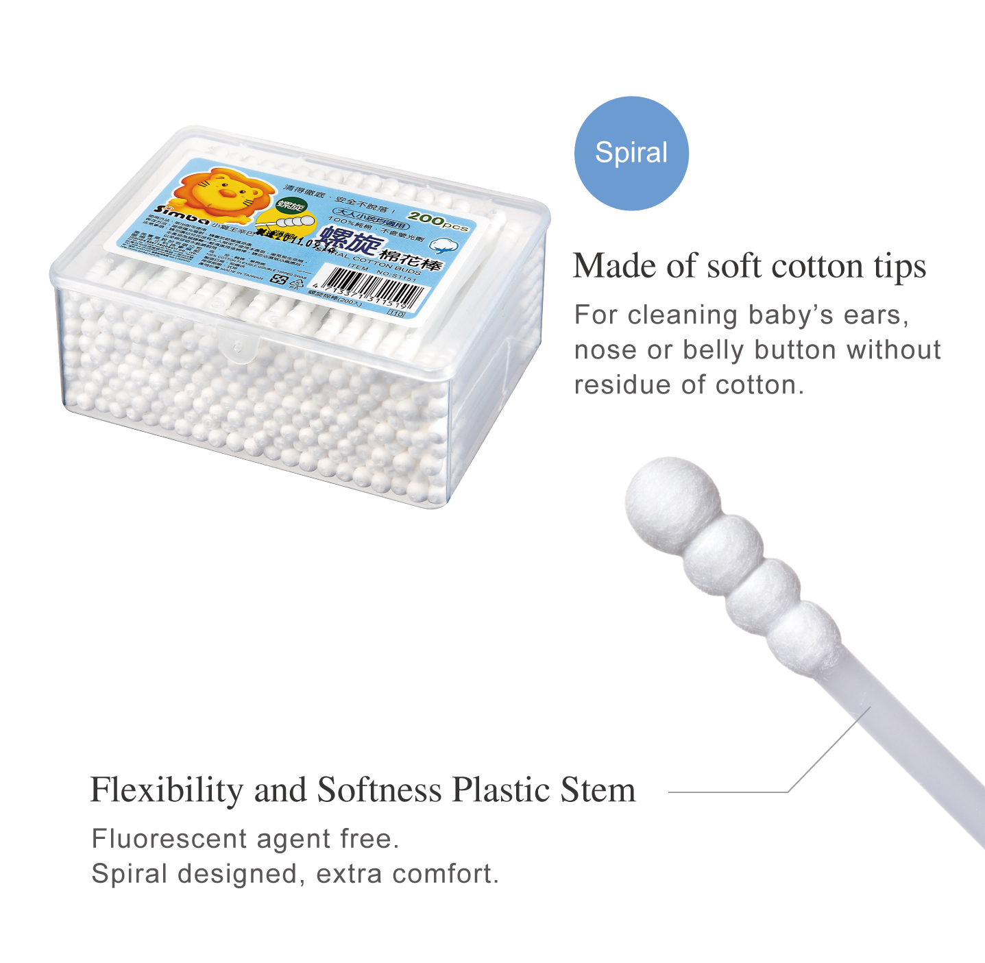 • Cotton head tightly wounded to avoid lose fiber, suitable for cleaning of the baby's ears, nostrils, and umbilical cord.