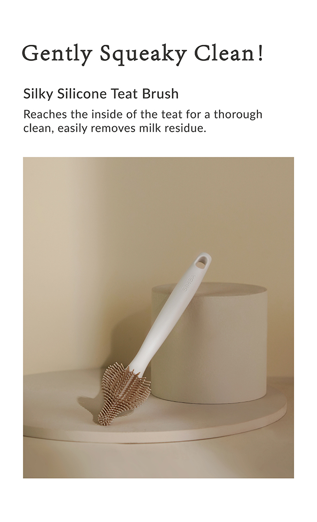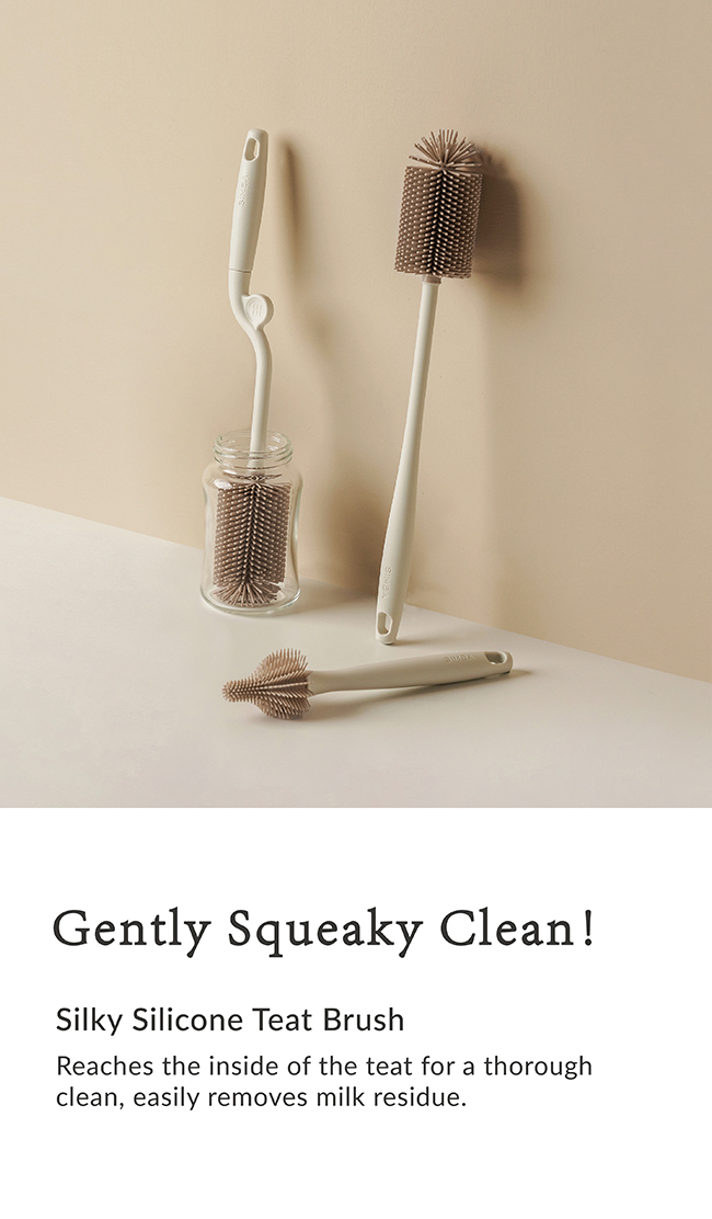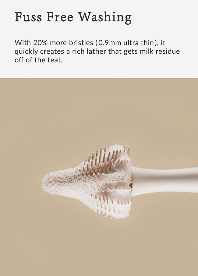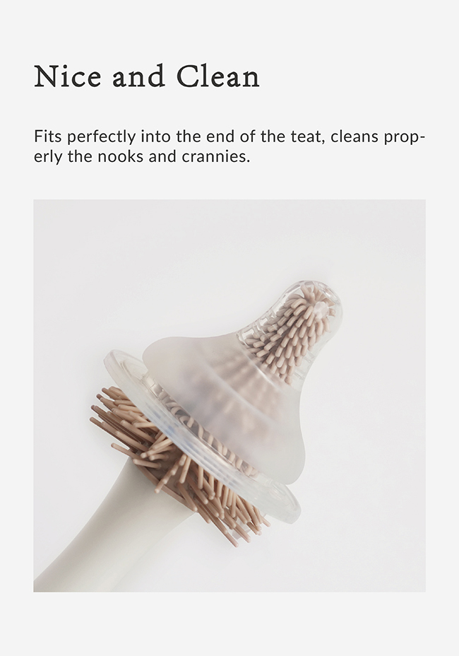 Use with feeding bottle cleaner, place deep into the teats and brush. After cleaning, hang dry at a ventilated location.