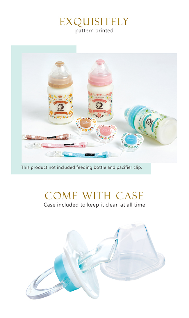 • Material: Pacifier: Food grade silicone (-20℃ ~ + 120℃)
