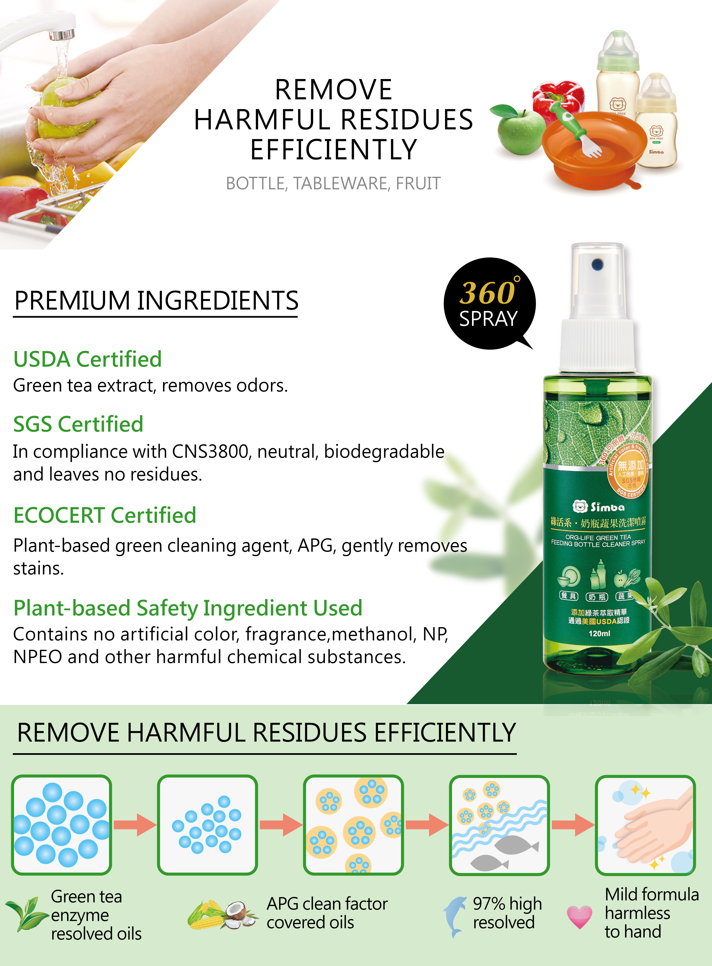 ORG-LIFE Green Tea Feeding Bottle Cleaner Spray 120ml/4oz S2240