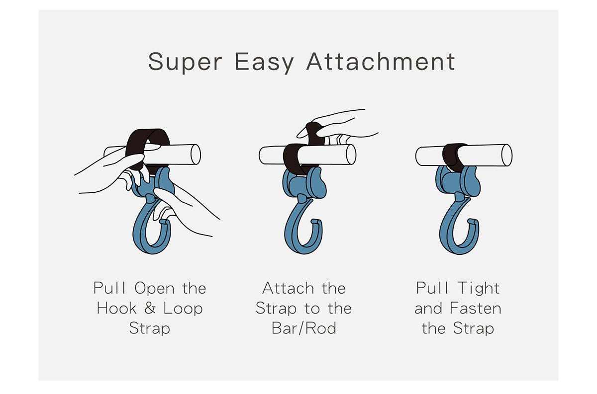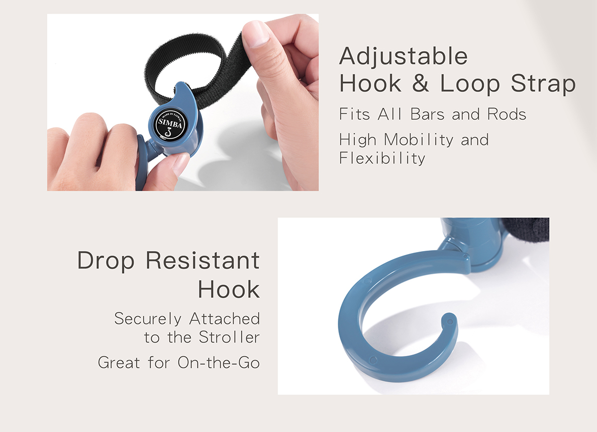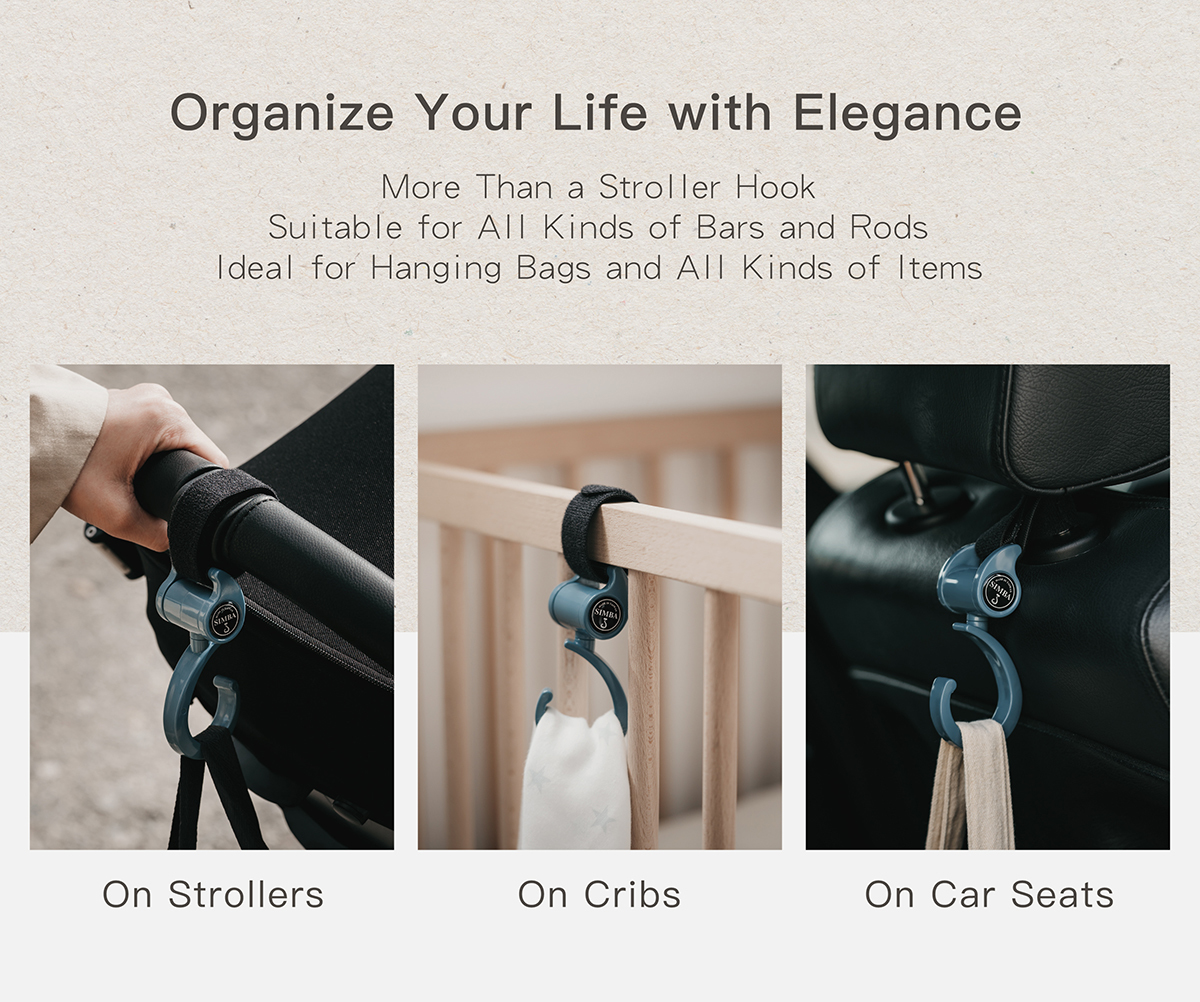 可調節魔術帶適用於大多數規格推車,可掛收納袋、媽媽包、玩具等。