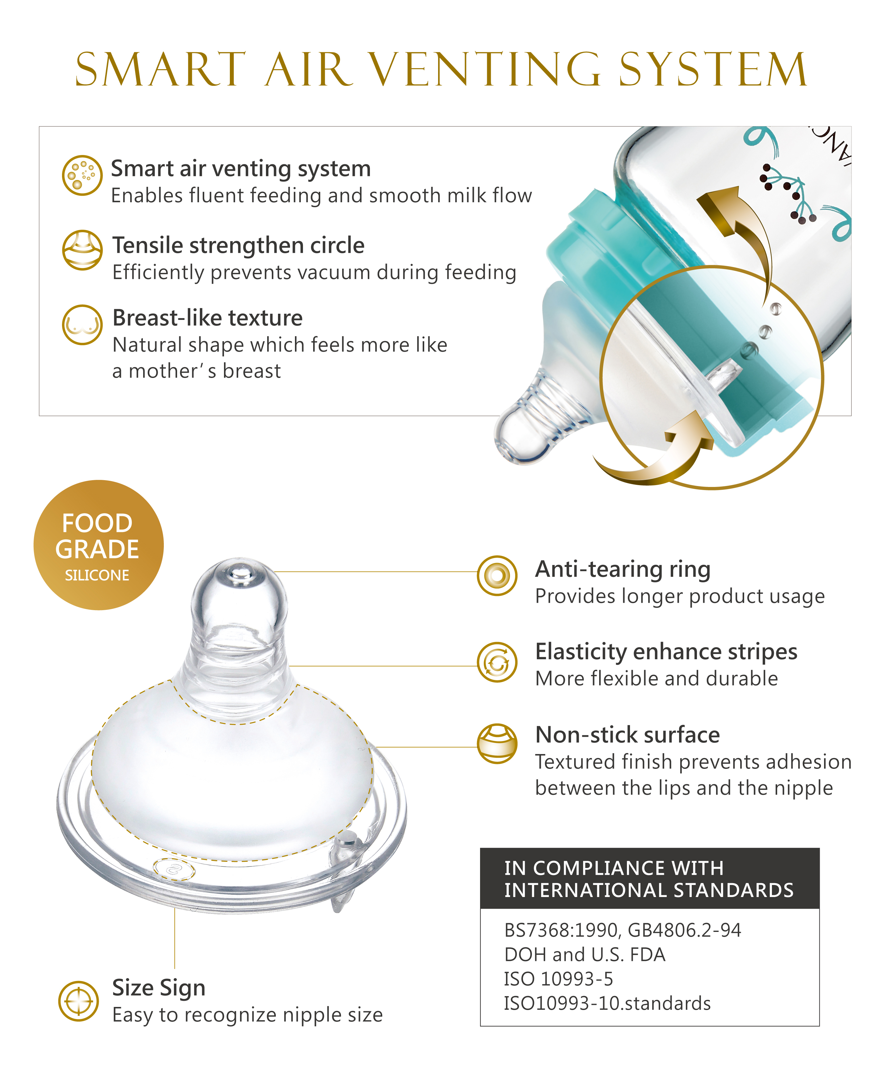 Anti-colic Teat: Silicone (-40℃~+150℃)