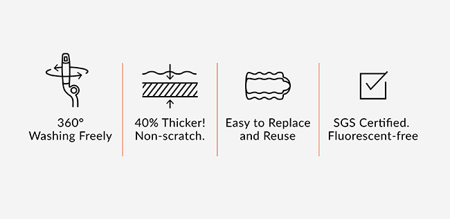 ▪ 40% thicker! The sponge sweeps away residues for a thorough clean