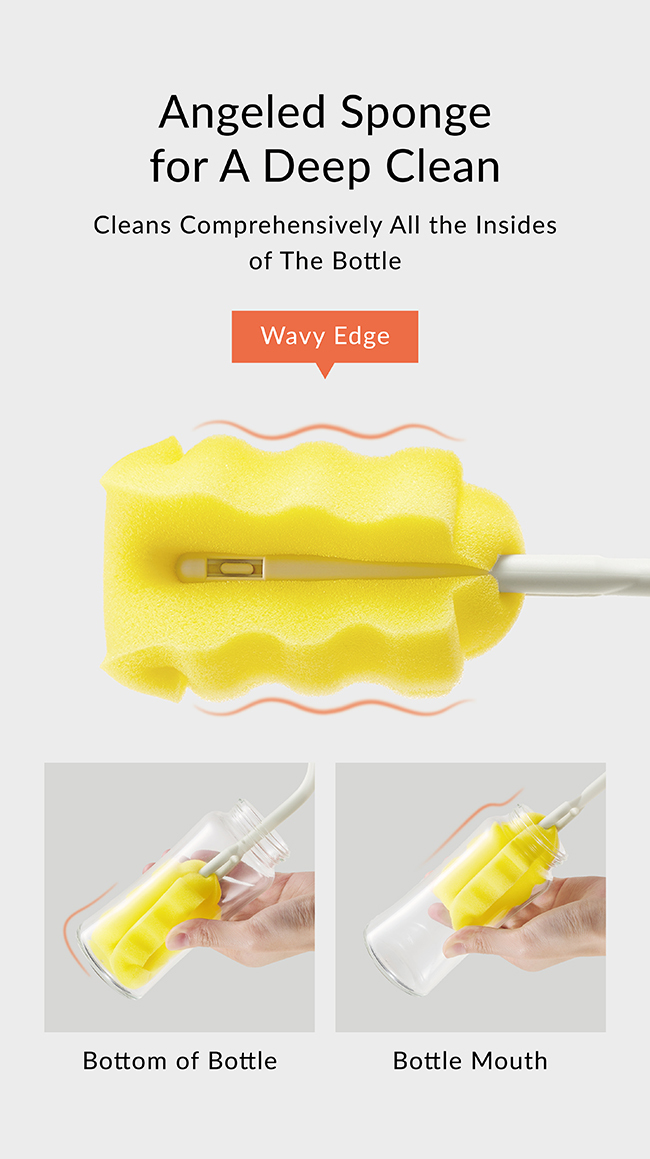 ▪ Wavy edge sponge cleans comprehensively all the insides of the bottle