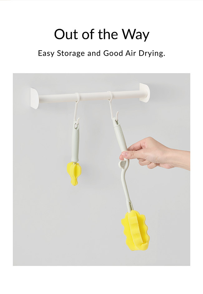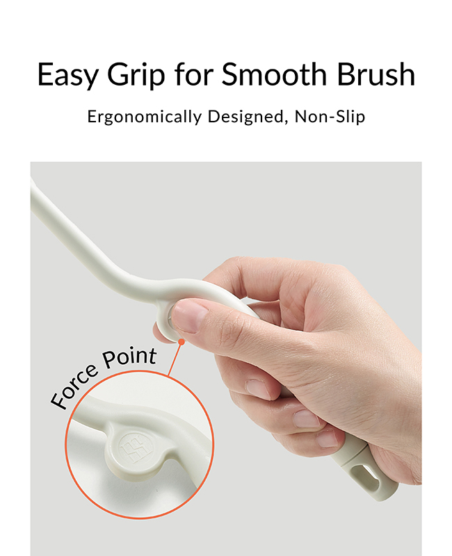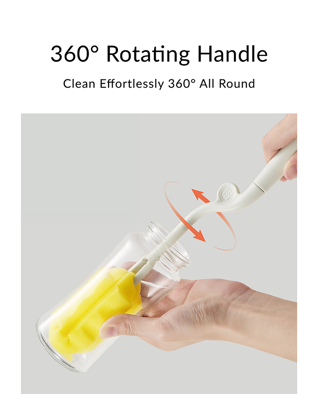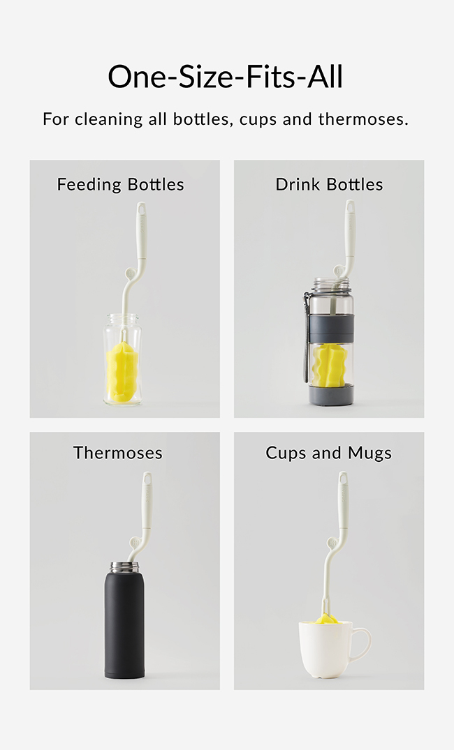 ▪ Use with the Bottle Cleanser, reach the bottom of the bottle and brush 360° all round, rinse and hang dry.