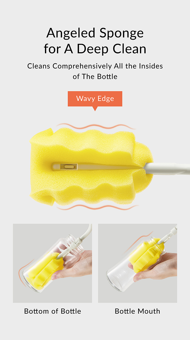 ▪ Wavy edge sponge cleans comprehensively all the insides of the bottle