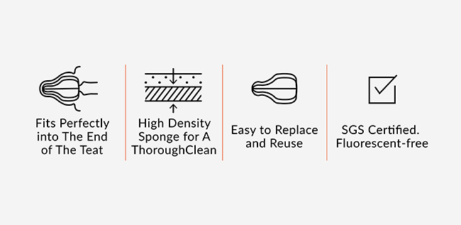 ▪ Fits perfectly into the end of the teat, cleans properly the nooks and crannies