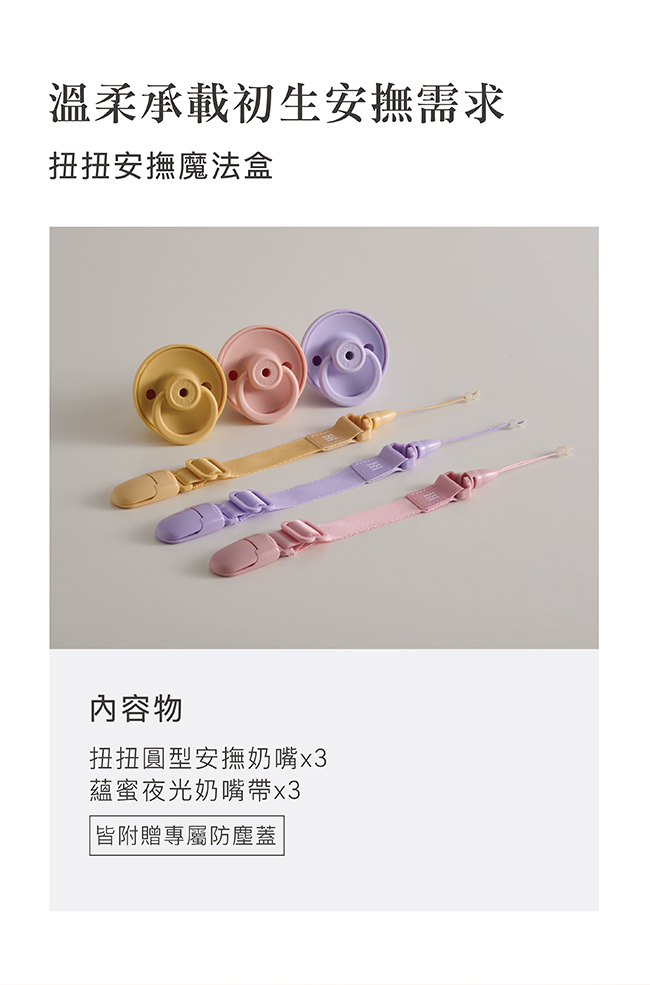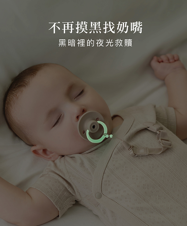 •柔和夜光珠設計,夜間不再摸黑找奶嘴。