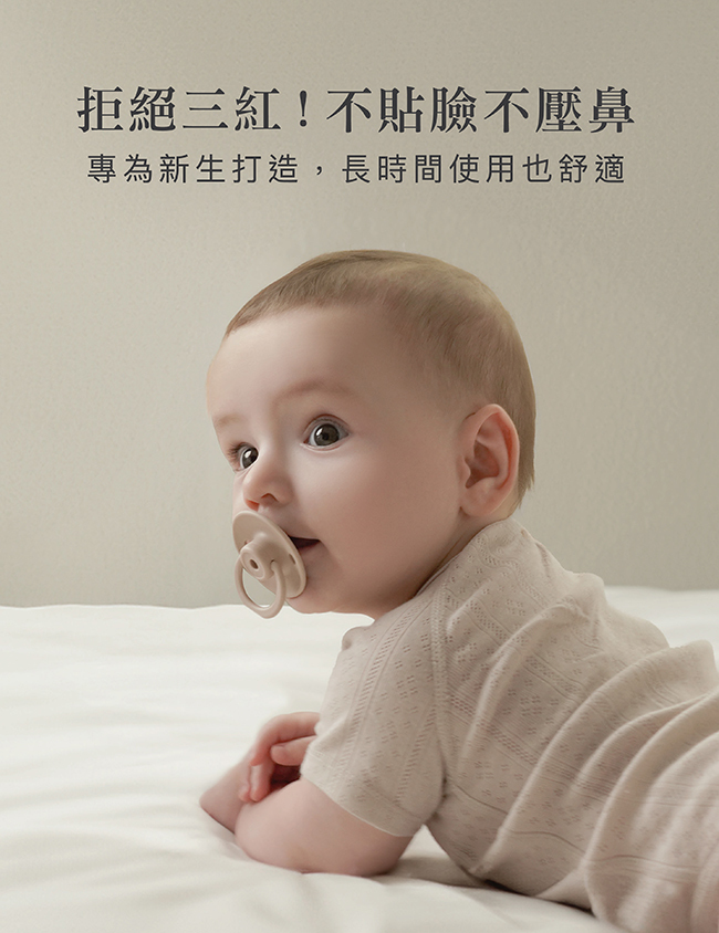 •安撫奶嘴耐溫高達100˚C,可整顆沸水消毒/蒸氣/紫外線消毒。