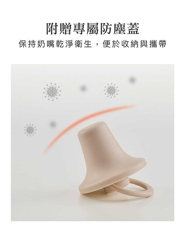 •附贈專屬防塵蓋保持奶嘴衛生,便於收納與攜帶。