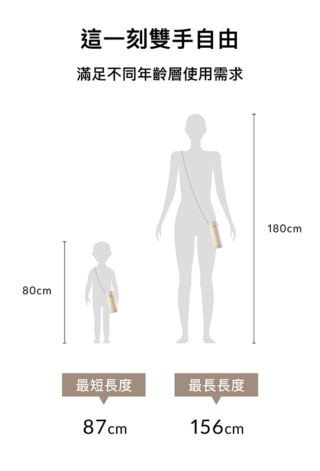 •背帶最短長度87cm,最長長度156cm,滿足不同年齡層使用。