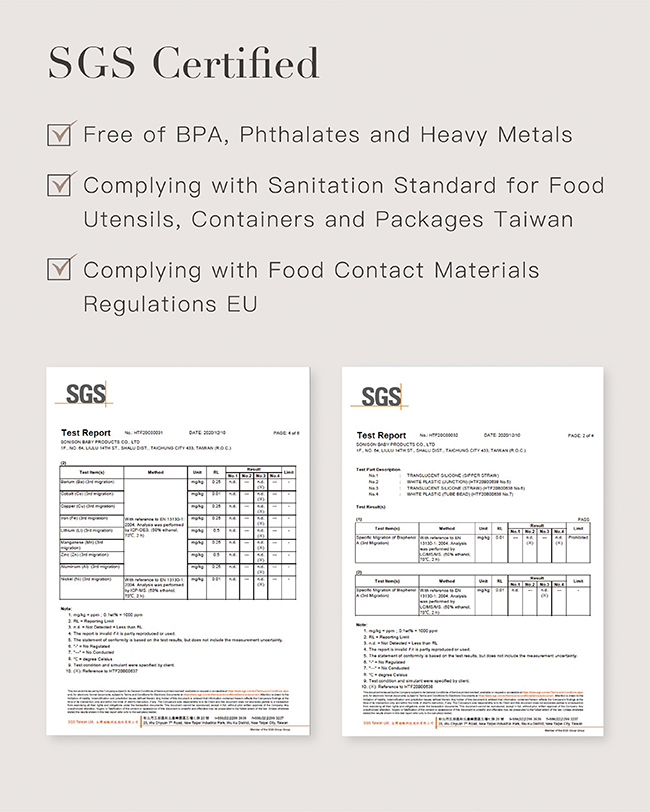 •Using 100% food grade platinum silicone from Shin-Etsu Chemical Japan, soft on baby’s mouth.
