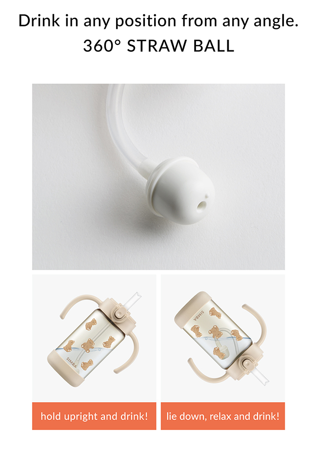•360˚導管珠設計,全角度喝水順暢無阻,任何角度都喝得到。