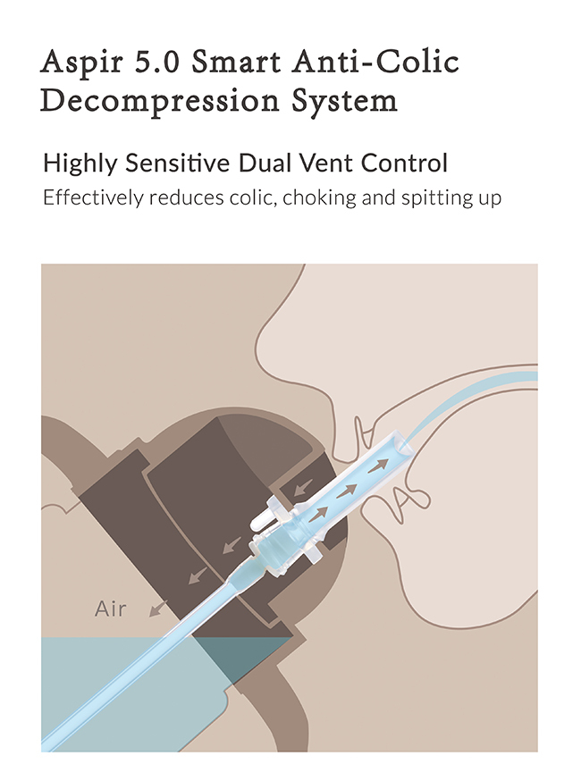 •Aspir 5.0 Smart Anti-Colic Decompression System, effectively reduces colic, choking and spitting up.