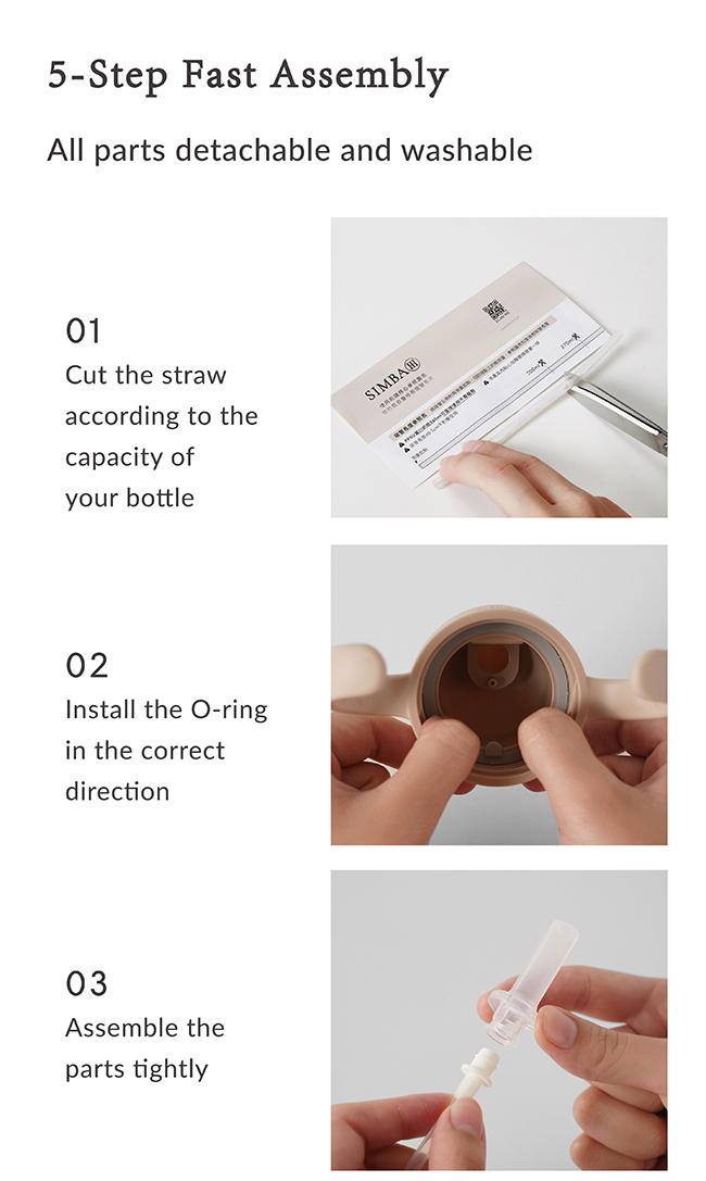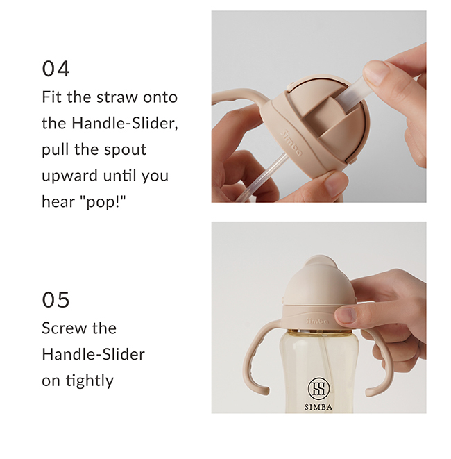 04 Fit the straw onto the Handle-Slider, pull the spout upward until you hear "pop!"