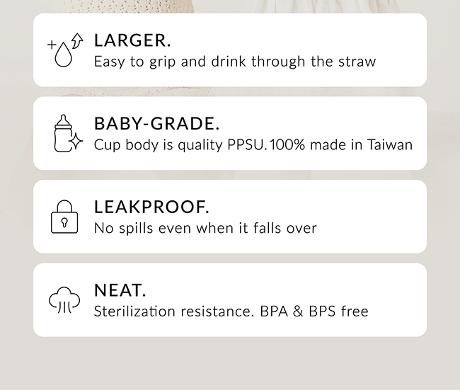 •選用奶瓶級PPSU材質,喝出高規格品質。