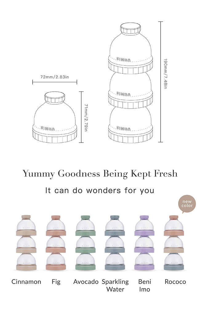 •Lids with the patented leakproof ring, able to contain and seal up liquid style baby food.