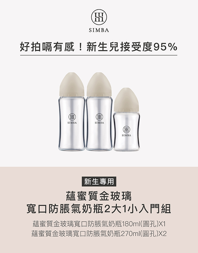 蘊蜜質金玻璃寬口防脹氣奶瓶180ml(圓孔SS)X1