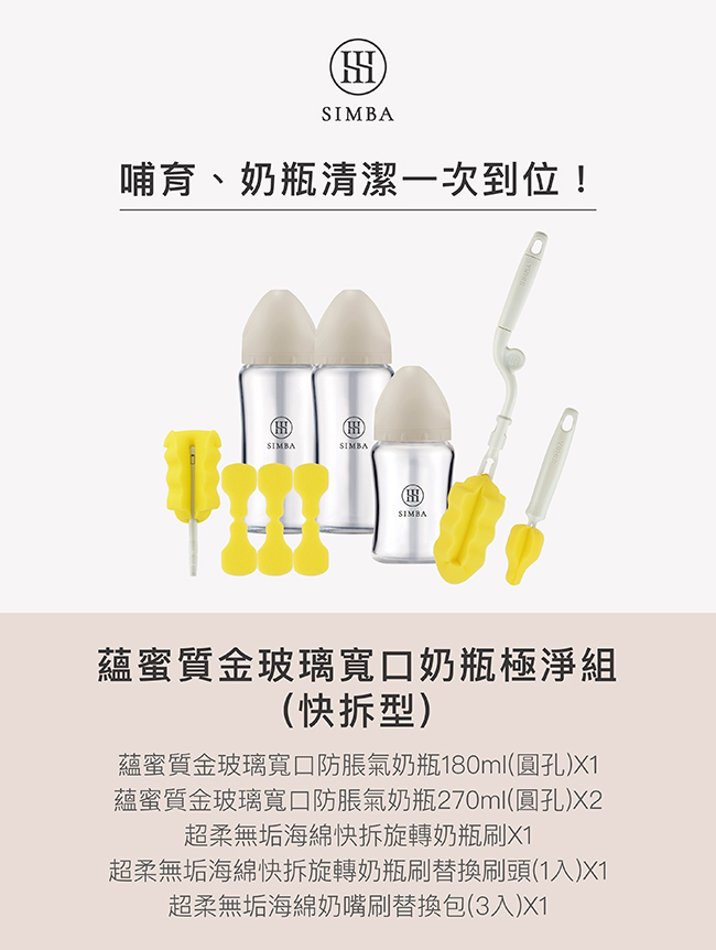 •蘊蜜質金玻璃寬口防脹氣奶瓶180ml(圓孔SS)*1
