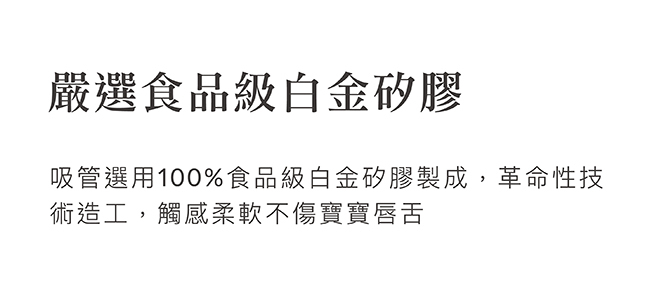 •選用100%食品級白金矽膠,觸感柔軟不傷寶寶唇舌。