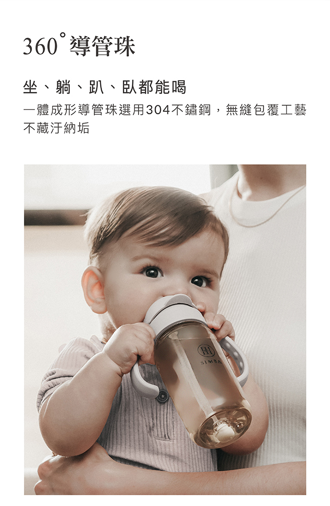 •360˚導管珠,坐、躺、趴、臥都能喝,導管珠無縫包覆工藝不藏汙納垢。