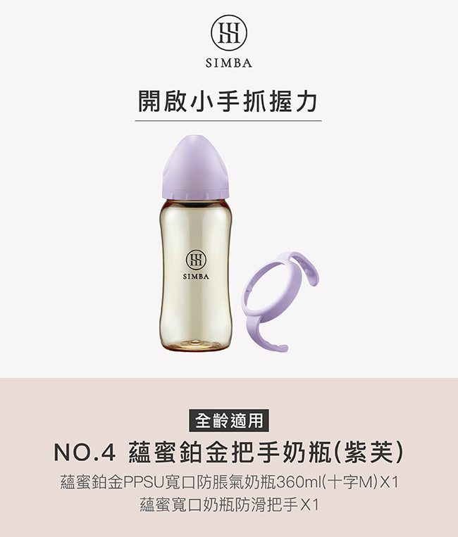 【新品上市】小獅王辛巴 全齡適用-360ml/12oz NO.4蘊蜜鉑金PPSU寬口把手防脹氣奶瓶 (紫芙)