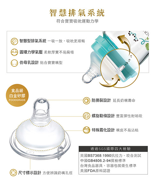 •搭配母乳記憶超柔防脹氣寬口圓孔S奶嘴。