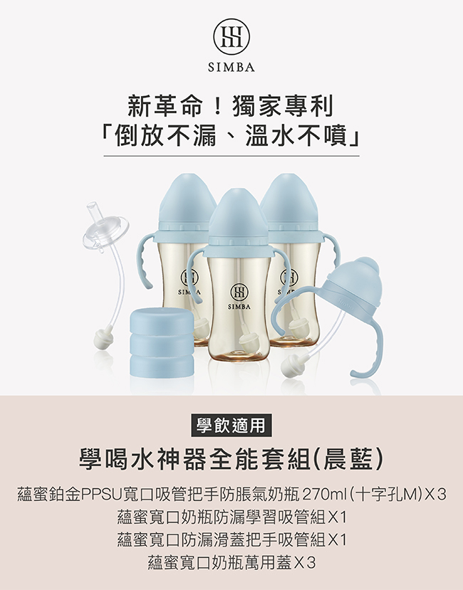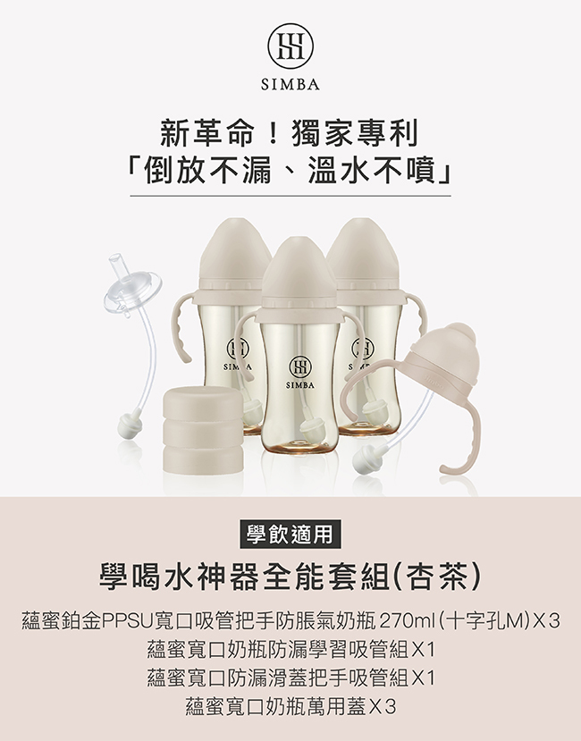 小獅王辛巴 學飲適用-270ml/9oz 蘊蜜鉑金PPSU學喝水神器全能套組