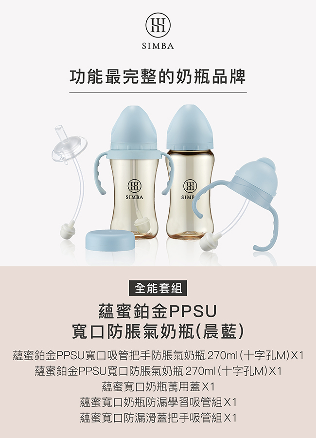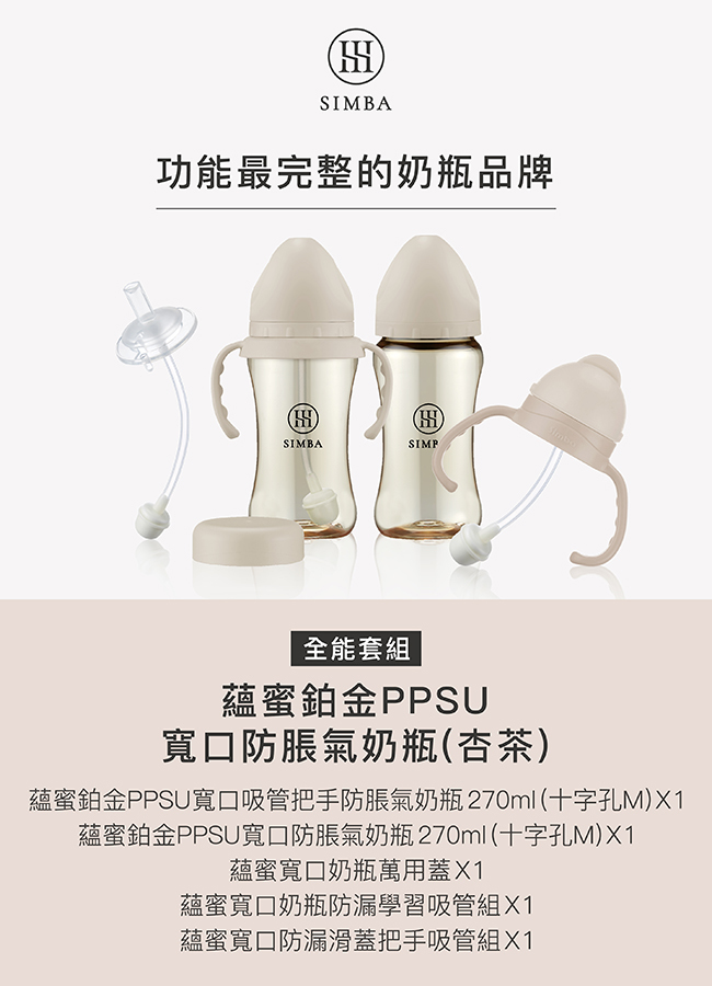 小獅王辛巴 蘊蜜鉑金PPSU寬口防脹氣奶瓶270ml/9oz(全能套組)
