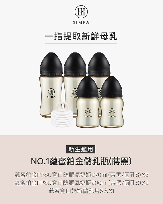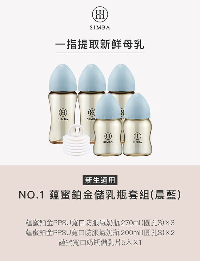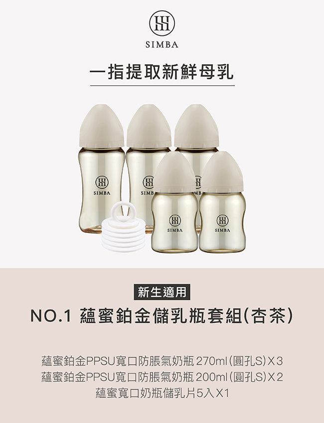 小獅王辛巴 新生適用-270ml/9oz+200ml/7oz NO.1蘊蜜鉑金儲乳瓶套組