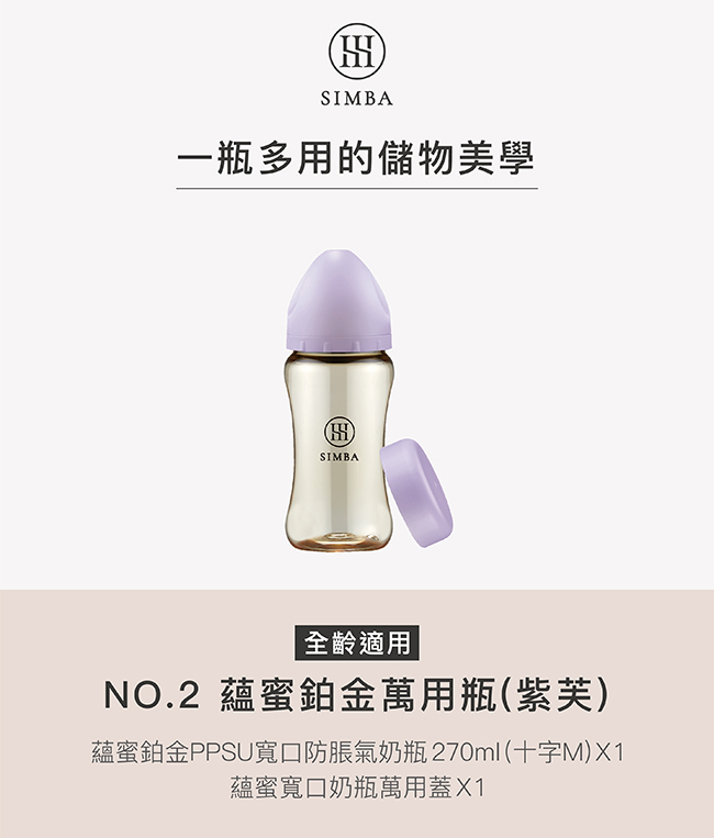 【新品上市】小獅王辛巴 全齡適用-270ml/9oz NO.2蘊蜜鉑金萬用瓶 (紫芙)