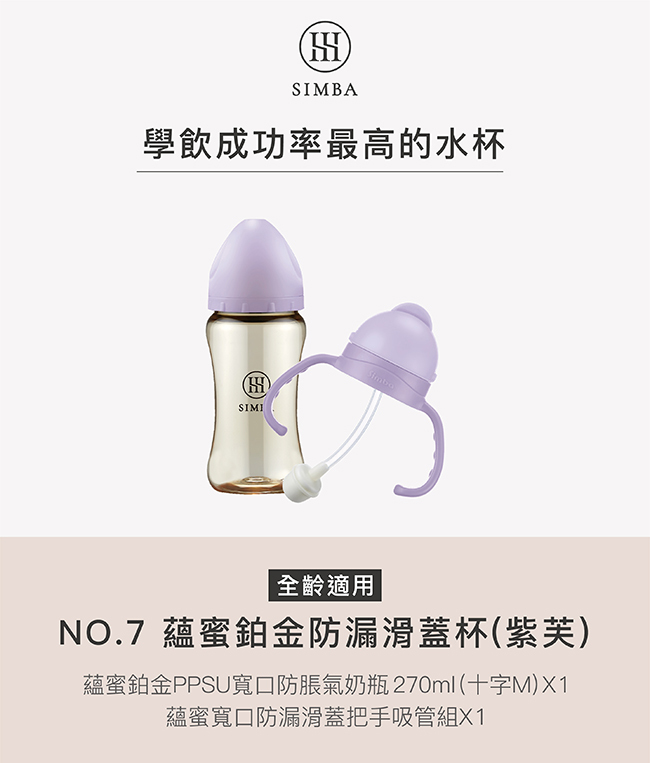 【新品上市】小獅王辛巴 全齡適用-270ml/9oz NO.7蘊蜜鉑金防漏滑蓋杯 (紫芙)