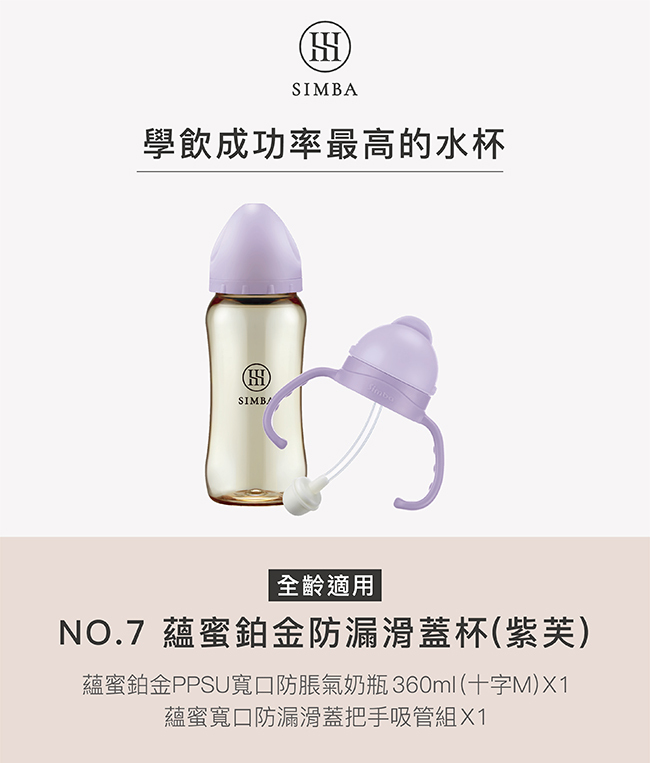 【新品上市】小獅王辛巴 全齡適用- 360ml/12oz NO.7蘊蜜鉑金防漏滑蓋杯 (紫芙)