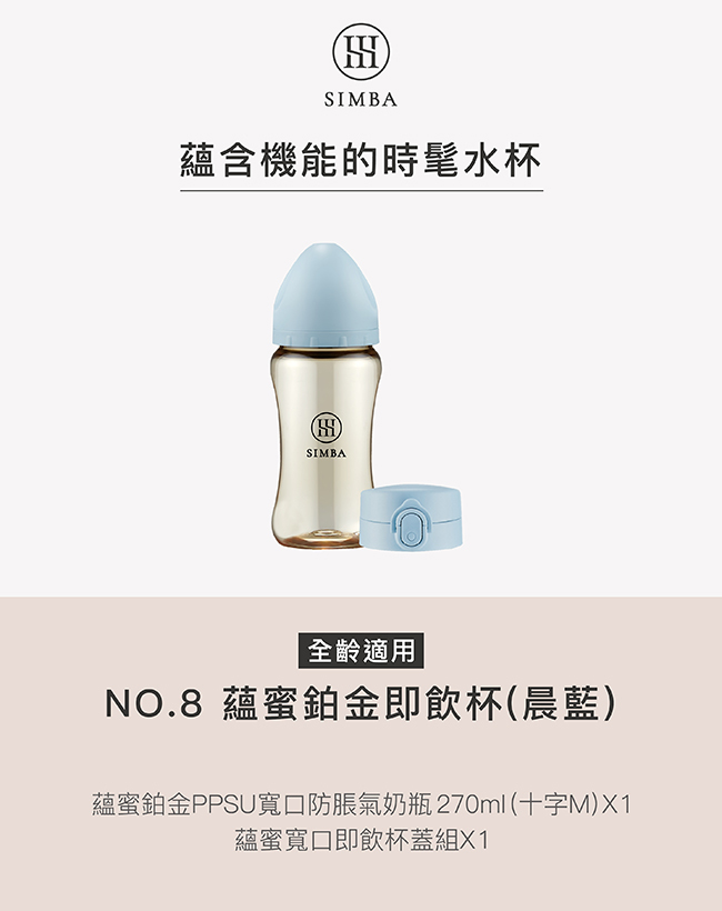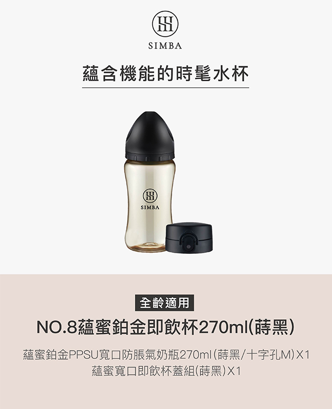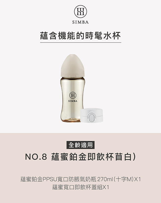 小獅王辛巴 全齡適用-270ml/9oz NO.8蘊蜜鉑金即飲杯