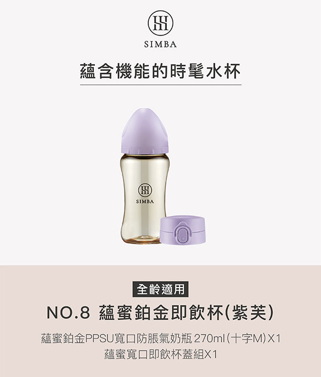 【新品上市】小獅王辛巴 全齡適用-270ml/9oz NO.8蘊蜜鉑金即飲杯 (紫芙)