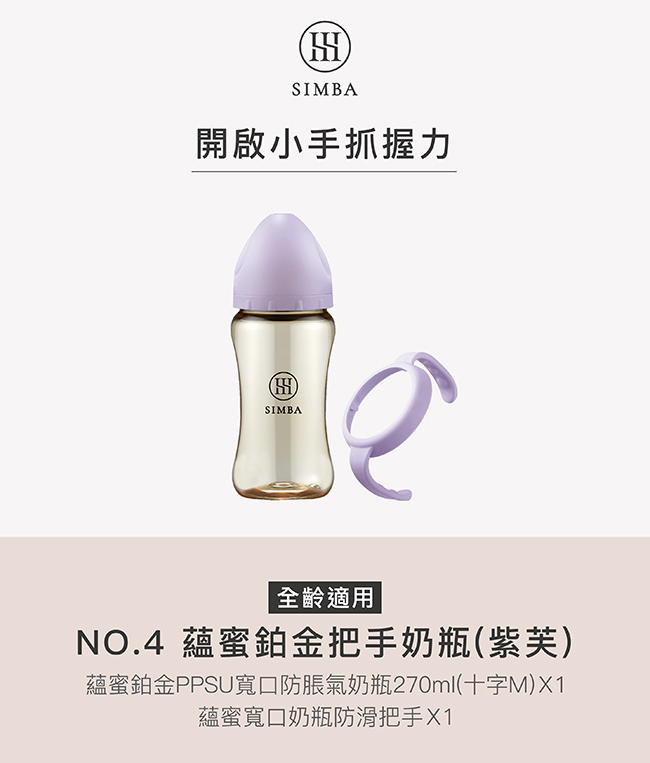 【新品上市】小獅王辛巴 全齡適用-270ml/9oz NO.4蘊蜜鉑金PPSU寬口把手防脹氣奶瓶 (紫芙)