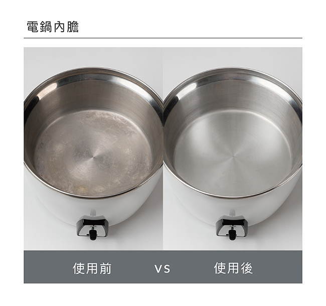 • 靜置後將水倒出,再倒入適量水以海綿清潔,最後以軟布擦拭乾淨。