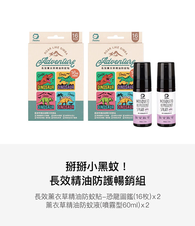長效薰衣草精油防蚊貼-恐龍圖鑑(16枚)