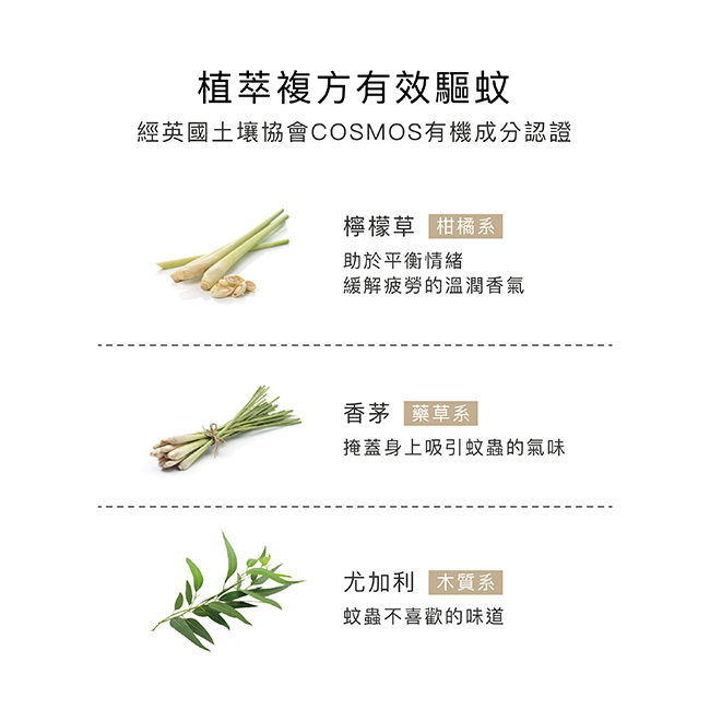-嚴選經英國土壤協會COSMOS有機認證檸檬草、香茅、尤加利精油
