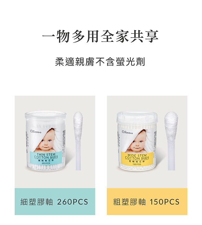 1.棉花頭緊實纏繞不脫棉絮,適合清潔寶寶耳朵、鼻孔及臍帶。