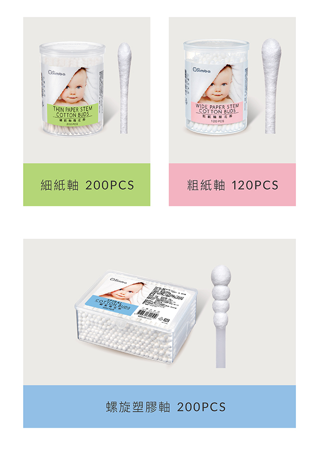 1.棉花頭緊實纏繞不脫棉絮,適合清潔寶寶耳朵、鼻孔及臍帶。