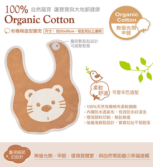 •不做精煉及漂白,生產製程完全無化學藥物殘留,保護寶寶每一吋肌膚。
