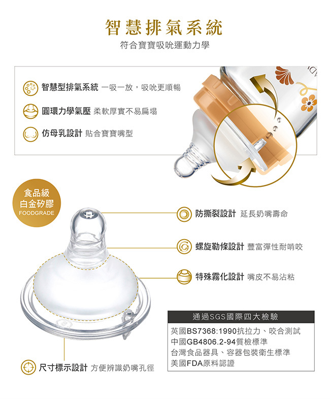 防脹氣奶嘴:矽膠(-40℃~+150℃)