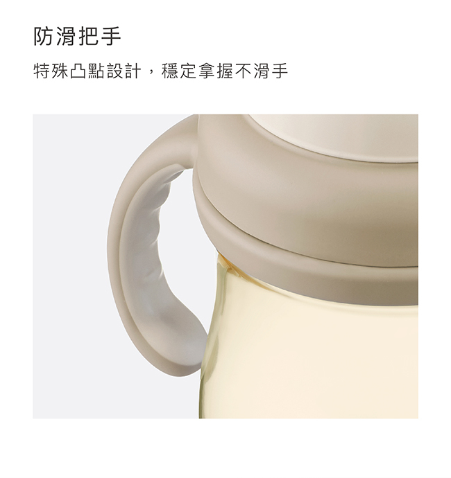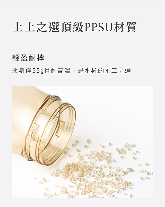 •瓶身嚴選頂級PPSU材質,輕盈耐摔且耐高溫。