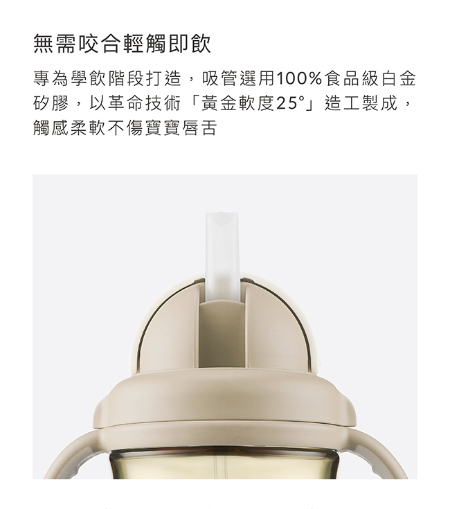 •吸管嚴選100%食品級白金矽膠,觸感柔軟不傷寶寶唇舌。